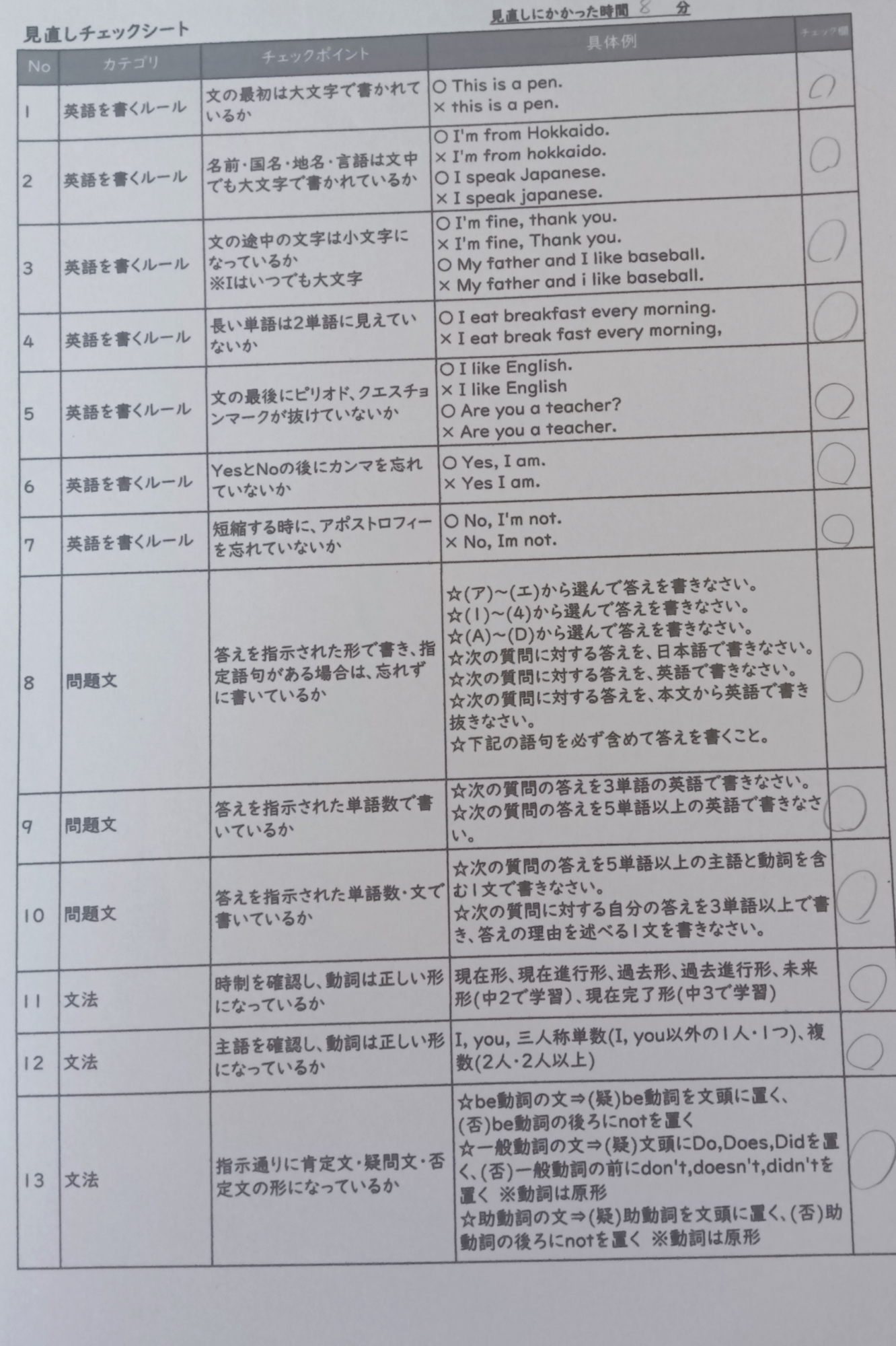 今回のテストに向けては、普段のレッスンの時から「見直しチェックシート」を使用し、ケアレスミスを減らすように努めてきました。本番のテストではこれまでに取り組んできたことをしっかり意識できていました。