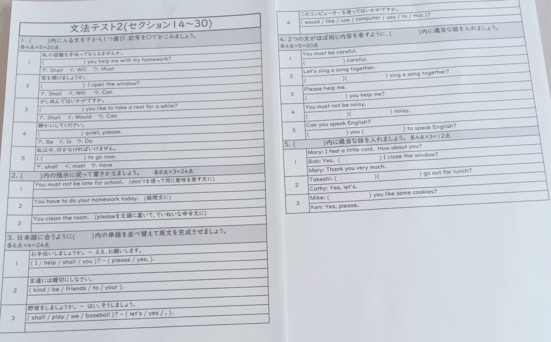 教科書ワークは、毎回、テスト範囲が出る前に自分で終わらせてくれているので、テスト2週間前にはほぼ完璧に書けています。今回はテスト対策に加え、中2内容と英検3級対策ができるくらい余裕がありました。テスト直前のレッスンでは本番を想定した予想問題を数種類解き、万全の状態にしました。